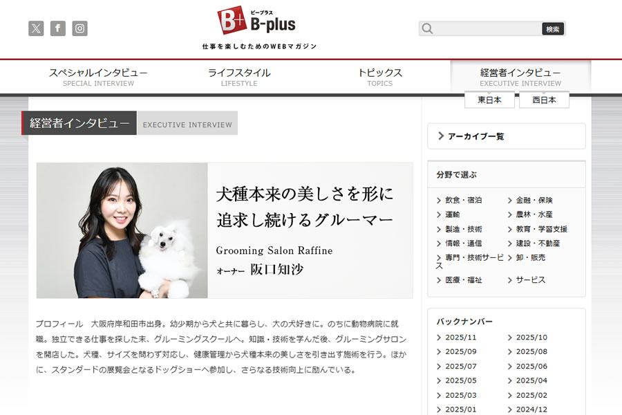 ラフィネオーナー阪口が、「仕事を楽しむためのWEBマガジン」B-plus(ビープラス)の経営者インタビューで紹介されました。